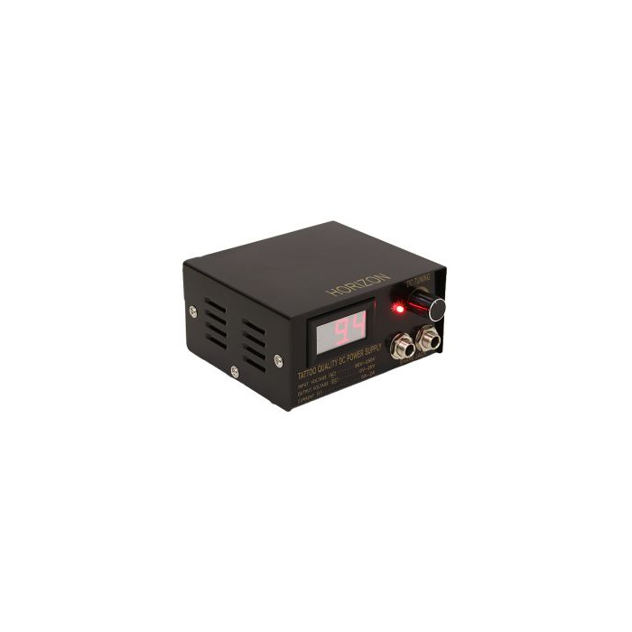 L'alimentation numérique pour tatouage Horizon offre un courant stable pour vos machines à tatouer. Elle possède deux entrées Jack 6,3 mm, une pour votre pédale de contact et une pour le câble de votre machine. L'alimentation est fournie avec une prise européenne, un câble clip-cord pour machine, et une pédale de contact.