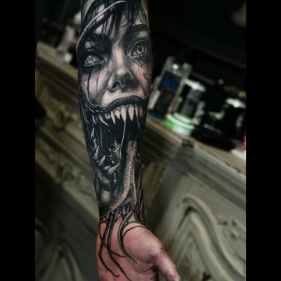 Vous pouvez en apprendre davantage avec Joshua dans ce tutoriel sur le tatouage blackwork d’inspiration horreur :