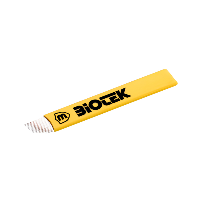 Les lames de microblading Flexy 16C de Biotek sont conçues pour créer de fins traits de poils et pour travailler sur des peaux plus difficiles lors des traitements de microblading.