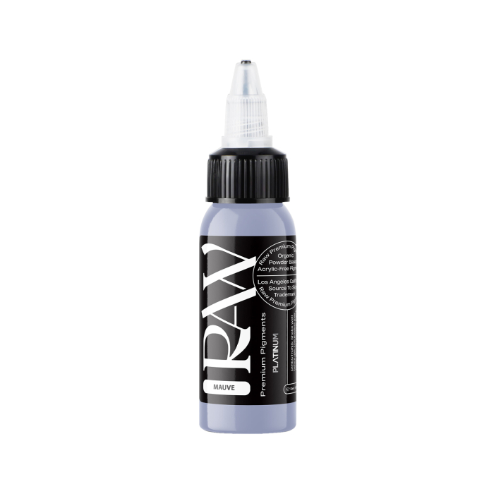 Mauve est une encre de tatouage lilas gris pastel de la gamme Platinum de Raw Premium Pigments, conforme aux normes EU REACH.