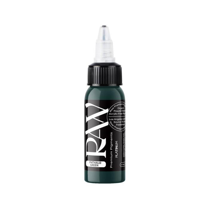 Phthalo Green est une encre de tatouage verte profonde et sombre de la gamme Platinum de Raw Premium Pigments, conforme aux normes EU REACH