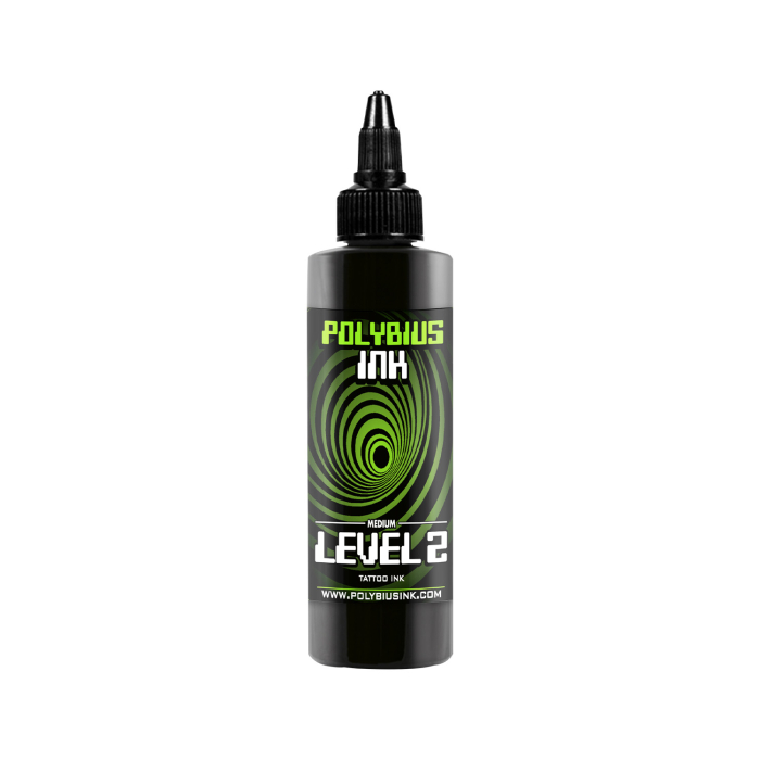 Medium Level 2 de Polybius Ink est une encre de tatouage grise moyenne qui est parfaite pour la transition entre les zones claires et foncées. Elle peut être utilisée seule ou diluée avec Level 0.