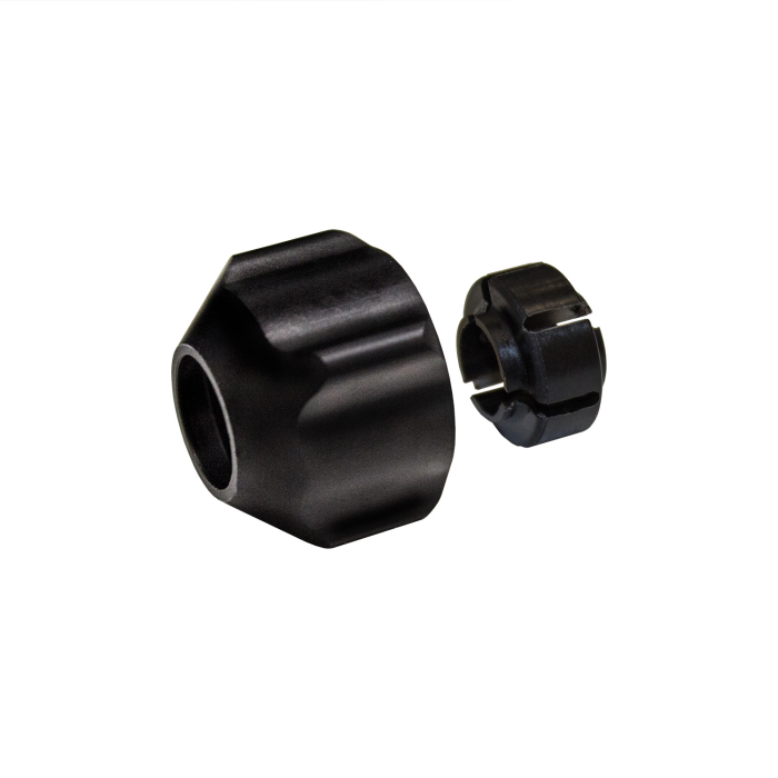 L'Adaptateur Universel à Vis permet d'utiliser des manchons pour cartouches avec tube arrière standard tels que les manchons RPG Click, sur machines avec système de serrage par vis (de type Cheyenne).