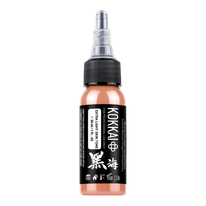 Build lifelike skin tones with Kokkai Sumi Ink in Extra Light Skintone, part of a 5-shade set designed for portraits, realism, and covering existing tattoos. Offering smooth coverage, balanced undertones, and natural-looking results, it's perfect for layering highlights, mids, and undertones.