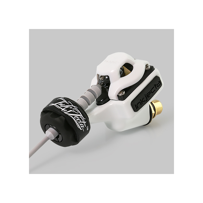 The Inkjecta Flite Nano Elite is a rotary tattoo machine for cartridges. It features a billet alloy construction and a custom Nano technology motor, which ensures a very smooth performance. The Inkjecta Flite Nano Elite is the most versatile of the Inkjecta machines: it comes with all four drive bars: the soft, medium and hard torsion drives and the black semi rigid drive. This allows you to set up the hardness of your Inkjecta exactly as you like it.