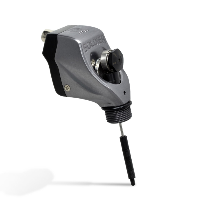 La Soldier est la machine idéale pour ceux qui apprécient la stabilité et la durabilité des moteurs sans balais. Le moteur Maxon 5 W Sans Balais intégré à la Soldier démarre à 7 volts et peut être utilisé sur une tension allant jusqu'à 14 volts. Cette machine est également idéale pour les artistes qui aiment pouvoir changer la longueur de frappe et la douceur de leur machine. La Soldier présente un excentreur de frappe magnétique unique, pouvant être retiré et repositionné à angles différents sans aucun outil, vous permettant d'obtenir la longueur de frappe de votre choix en quelques secondes seulement : l'excentreur s'attachera tout seul une fois repositionné grâce à ses faces magnétiques. La Soldier présente également une barre de poussée en deux parties magnétiques afin de vous laisser choisir et interchanger très simplement entre frappe Forte (Hard), Douce (Soft), et Intermédiaire (Medium), rendant cette machine intégralement personnalisable.